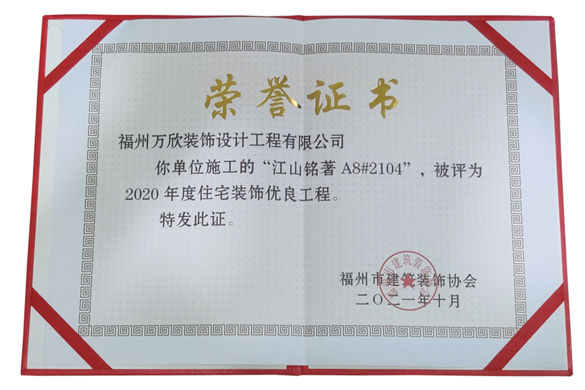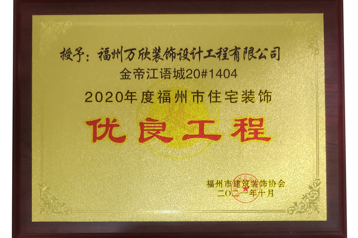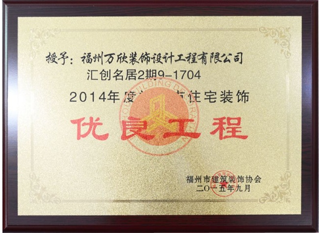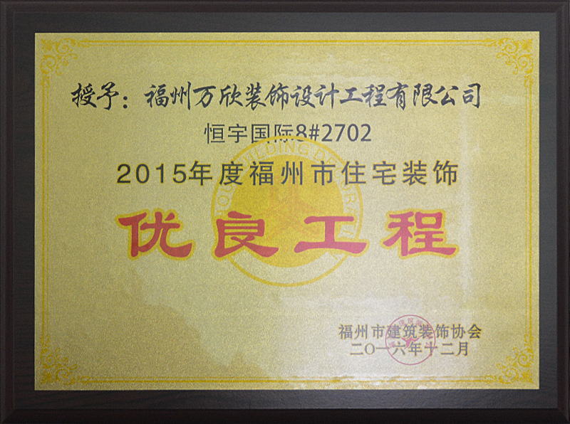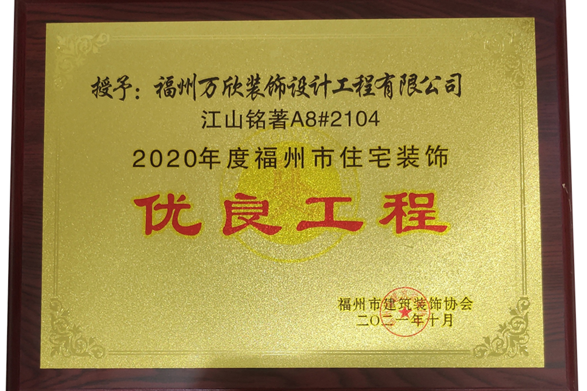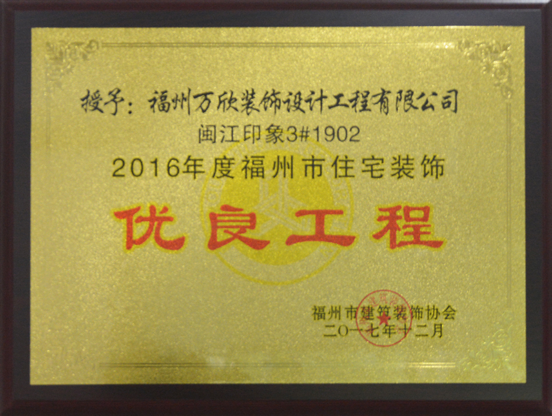 - >萬欣裝飾“閩江印象3#1902”被福州市裝協(xié)評選為優(yōu)良工程