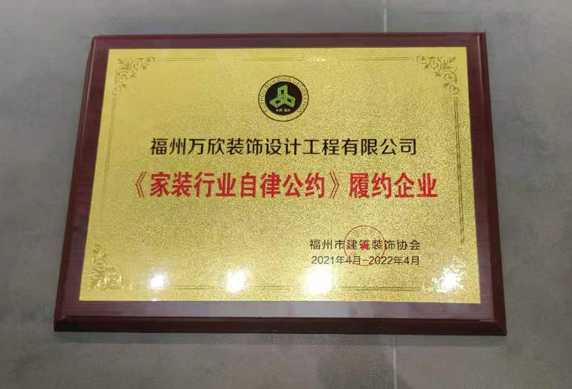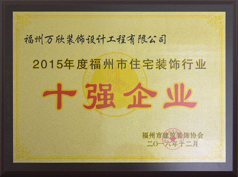 - >福州市建筑裝飾協(xié)會授予萬欣裝飾福州住宅裝飾十強(qiáng)企業(yè)