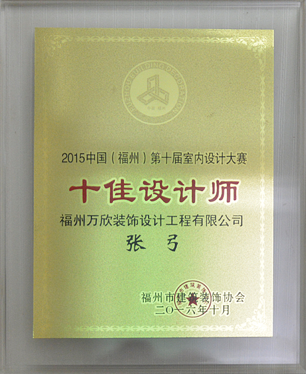 - >萬欣裝飾設(shè)計師張弓被評為中國(福州)第十屆室內(nèi)設(shè)計大賽十佳設(shè)計師