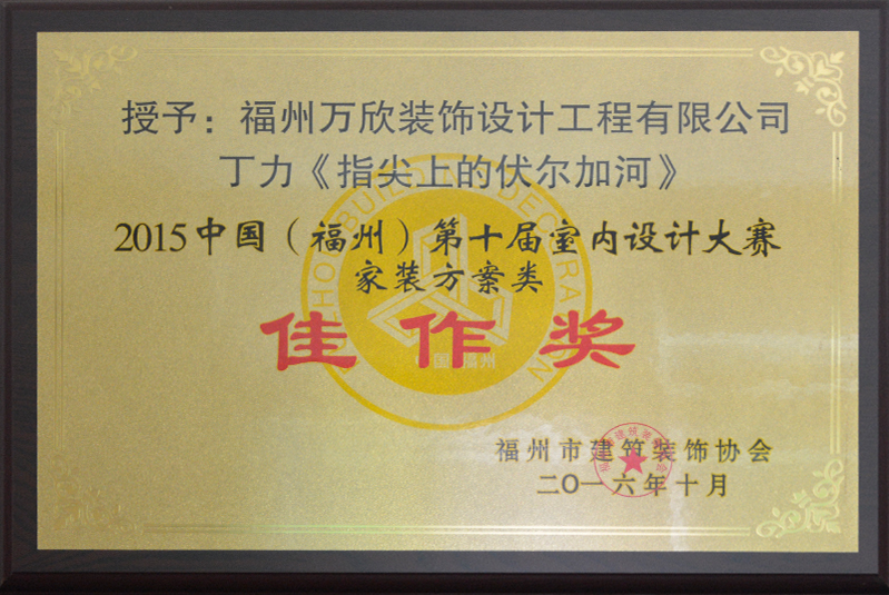 - >萬欣裝飾作品《指尖上的伏爾加河》被評為中國(福州)第十屆室內(nèi)設(shè)計大賽(家裝方案類)佳作獎