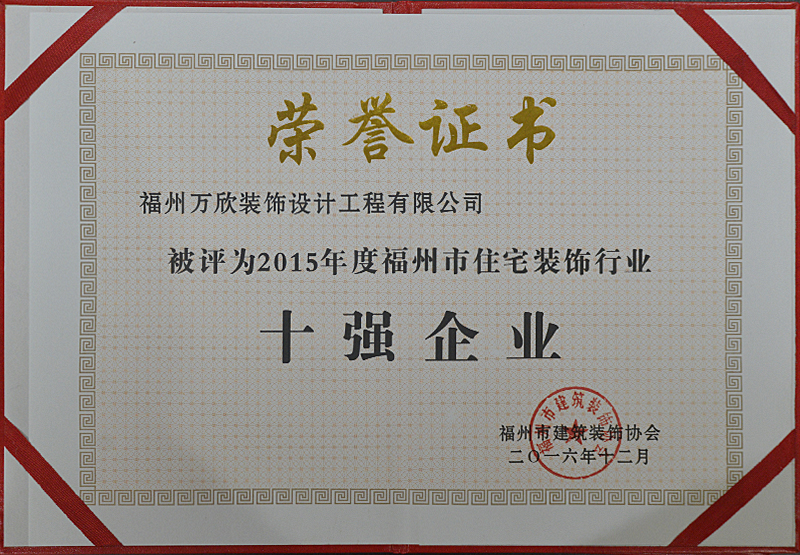 - >萬欣裝飾被評為2015年度福州市住宅裝飾行業(yè)十強(qiáng)企業(yè)