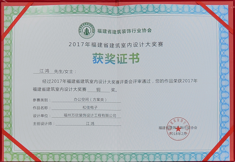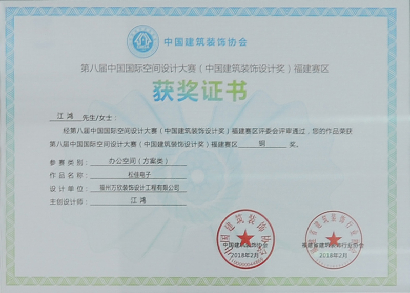 - >松佳電子作品榮獲第八屆中國國際空間設(shè)計大賽福建賽區(qū)銅獎