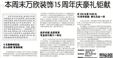 輝煌十五載,裝飾放心家<本周末萬欣裝飾15周年慶豪禮巨獻>